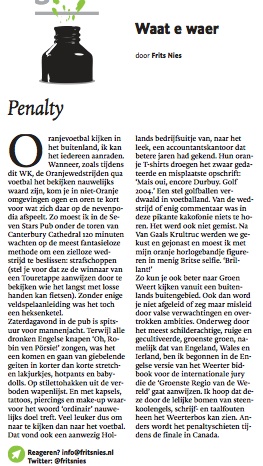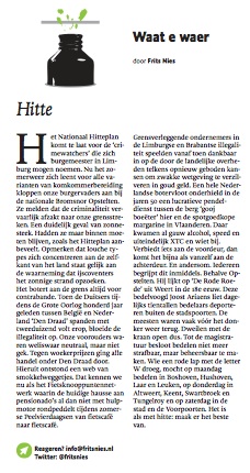 #Column over #Hitte in De #Limburger 19/07/201419/07/2014 Frits NiesEen reactie plaatsen “Opmerken dat louche types zich concentreren aan de zelfkant van het land staat gelijk aan de waarneming dat ijscoventers het zonnige strand opzoeken.” Dit delen:Delen E-mail een link naar een vriend (Opent in een nieuw venster) E-mail Delen op WhatsApp (Opent in een nieuw venster) WhatsApp Vind-ik-leuk Aan het laden...