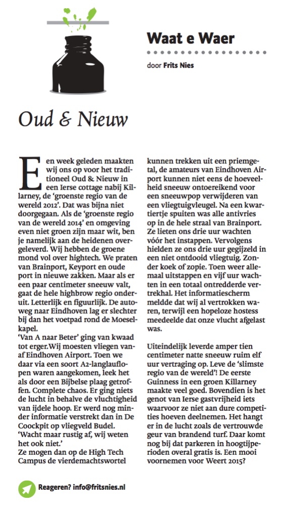 #Column over @ehvairport @slimsteregio #sneeuw Groen en #Guinness – @ED_Eindhoven 03/01/2015 Frits NiesEen reactie plaatsen Dit delen:Delen E-mail een link naar een vriend (Opent in een nieuw venster) E-mail Delen op WhatsApp (Opent in een nieuw venster) WhatsApp Vind-ik-leuk Aan het laden...