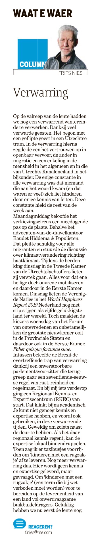 Verwarrende tijden – #column in De #Limburger 23/03/2019 Frits NiesEen reactie plaatsen Dit delen:Delen E-mail een link naar een vriend (Opent in een nieuw venster) E-mail Delen op WhatsApp (Opent in een nieuw venster) WhatsApp Vind-ik-leuk Aan het laden...