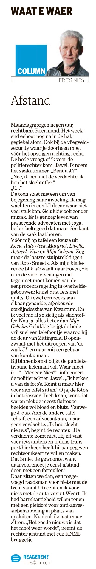 Laat maar zitten – #column in De #Limburger 18/05/2019 Frits NiesEen reactie plaatsen Dit delen:Delen E-mail een link naar een vriend (Opent in een nieuw venster) E-mail Delen op WhatsApp (Opent in een nieuw venster) WhatsApp Vind-ik-leuk Aan het laden...